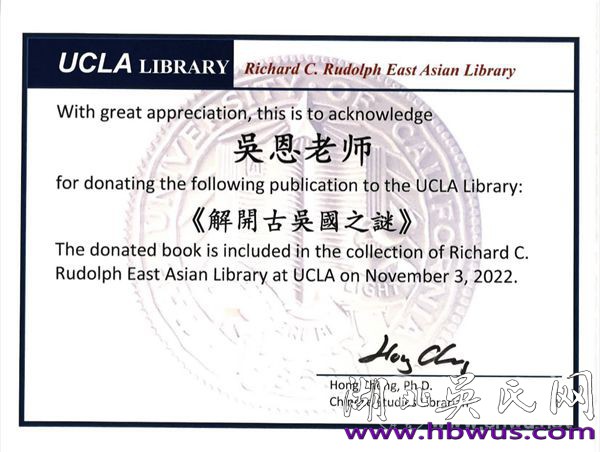 承蒙大家不嫌棄,我花了十多年研究和収集証據,寫成了拙作 《 解開古吳國之謎 》(是有関破解古吳國從古代到現代的歷史/ 謎團) 此書己經成為「谷歌」的全世界熱搜!除了香港大學圖書館,世界聯合圖書館、河南省社科研究院收藏此作品之外⋯⋯最近亦得到世界頂尖學府 美國加州大學 UCLA 圖書館收藏 (編號 East Asian Library DS 747. 15. W8236 2014 ) 非常感謝對我拙作的肯定和鼓勵!讓我花十多年的心血沒有白費!