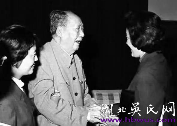 毛主席接见吴桂贤宗长(右一),左一为:章含之先贤。